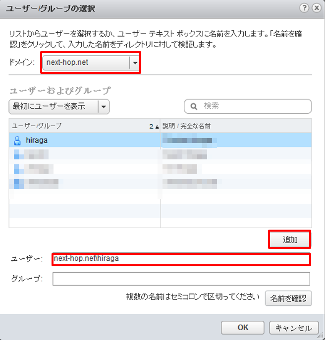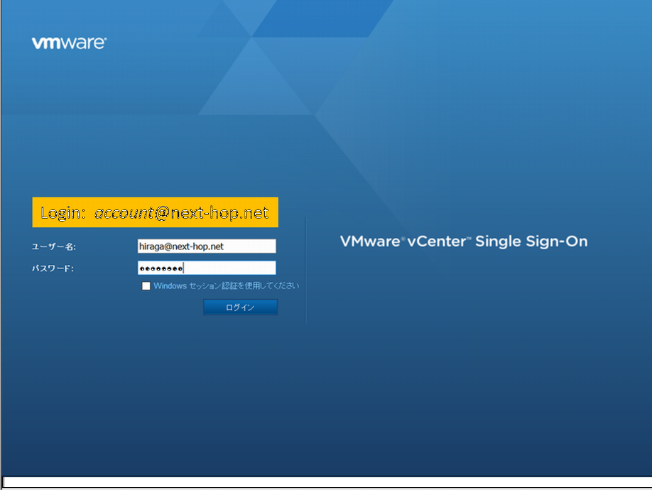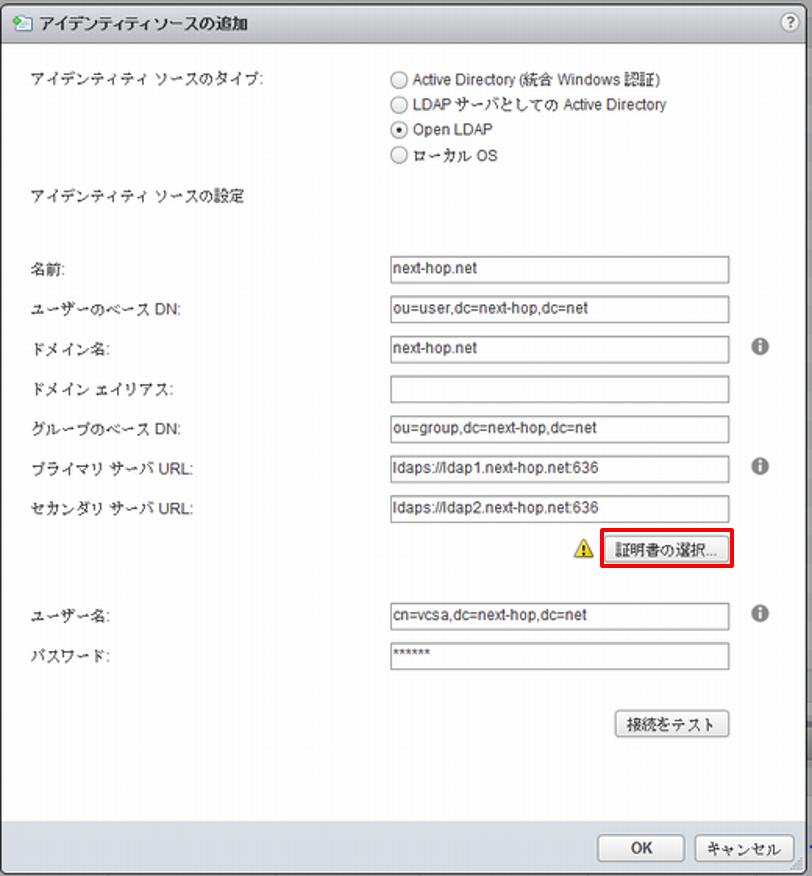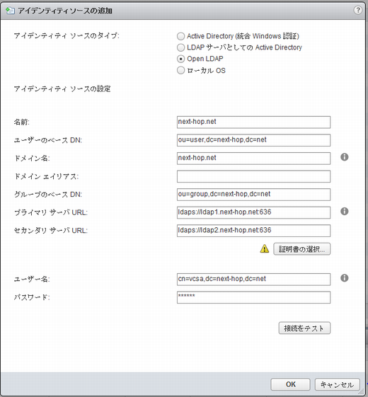 ユーザー名cn=vcsa,dc=next-hop,dc=net